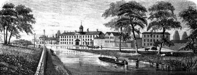 A view of Wedgwood’s Etruria works from across the canal. From The Life of Josiah Wedgwood (1865) by Eliza Meteyard.