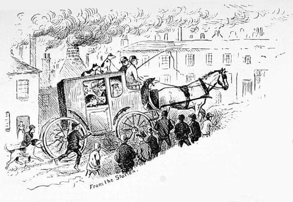 Providing a series of illustrations for The Illustrated Sporting and Dramatic News, was Louis Wain, the artist who in later life went mad and spent his latter years painting numerous pictures of sinister anthropomorphic cats. At the time of the Hanley dog show, however, he was still quite sane and penned a series of fine dog portraits and whimsical side illustrations. The most amusing sketch showed a carriage trundling its way up the bank from Stoke Station up into Hanley, bringing with it a fine collection of prize pooches, large and small, riding in or on top, or running behind the coach, evidently much to the astonishment of onlookers.