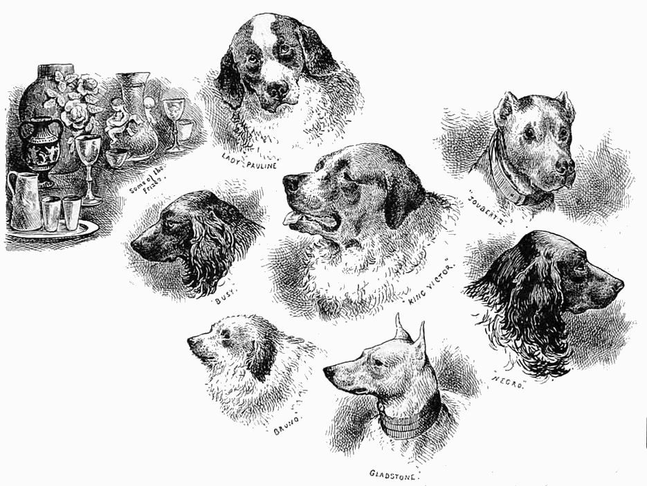 Some of the prize winning animals at the 1885 Hanley dog show.